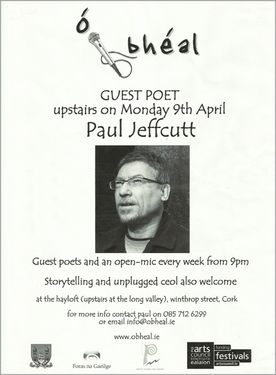 He has also given public readings of his poetry at numerous venues in Ireland and the UK.